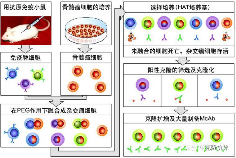 它通常采用杂交瘤技术来制备,将具备这种特性的单个杂交瘤细胞培养成细胞群,从根本上解决了在抗体制备中长期存在的特异性和可重复性问题,可直接用于疾病的诊断、预防、治疗以及免疫机制的研究。